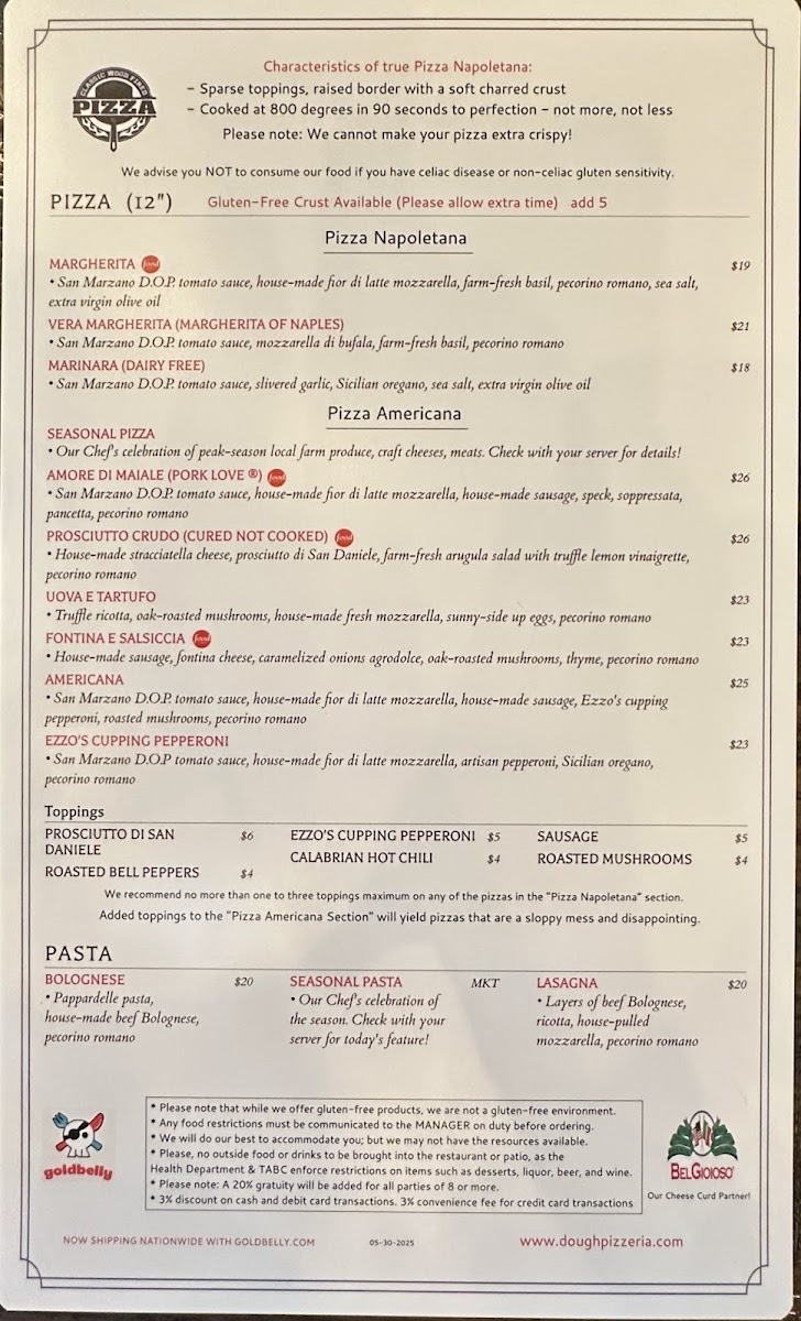 Overall, Dough Pizzeria Napoletana offers a delightful culinary experience, with each dish crafted to perfection and a staff dedicated to making every meal memorable.